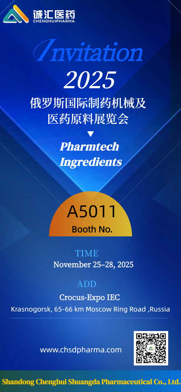(Pharmtech & Ingredients) will be held at the Crocus Expo IEC in Moscow. Shandong Chenghui Pharmaceutical Group will showcase its core products and technical solutions at booth A5011. We sincerely invite global new and old customers to visit us and explore new opportunities for cooperation.